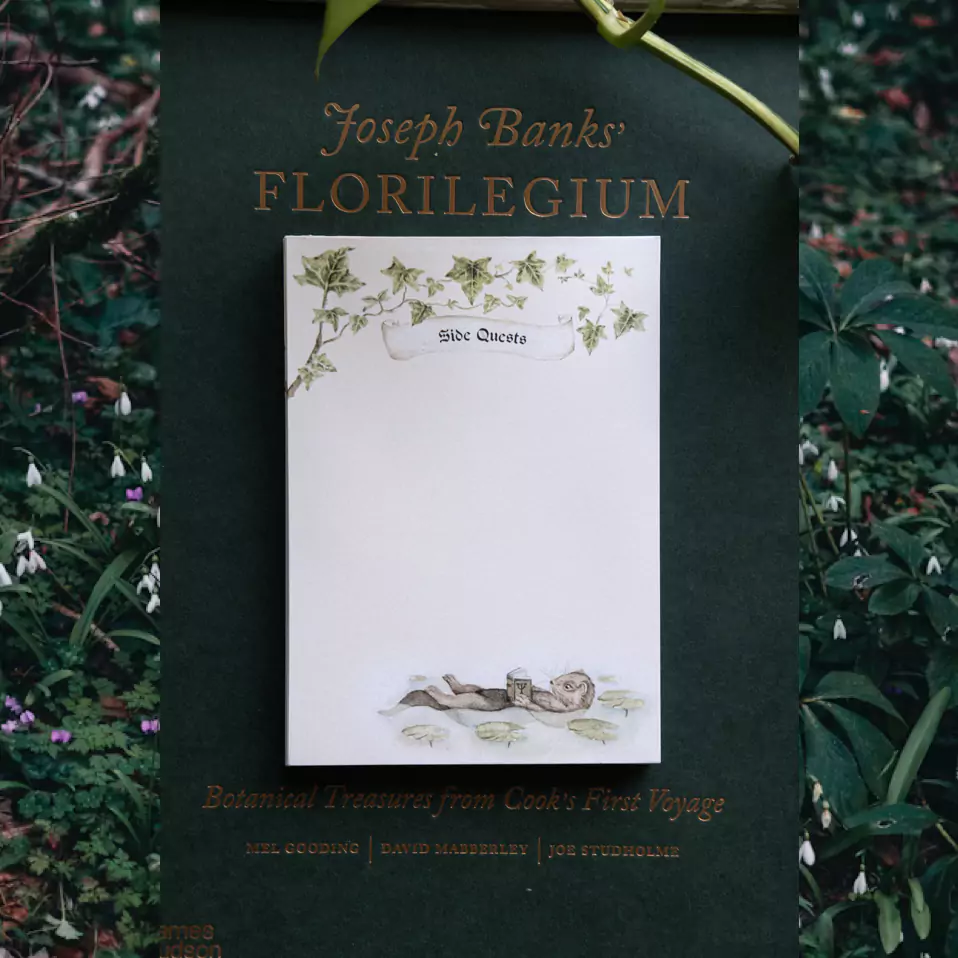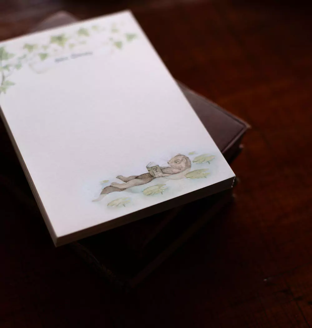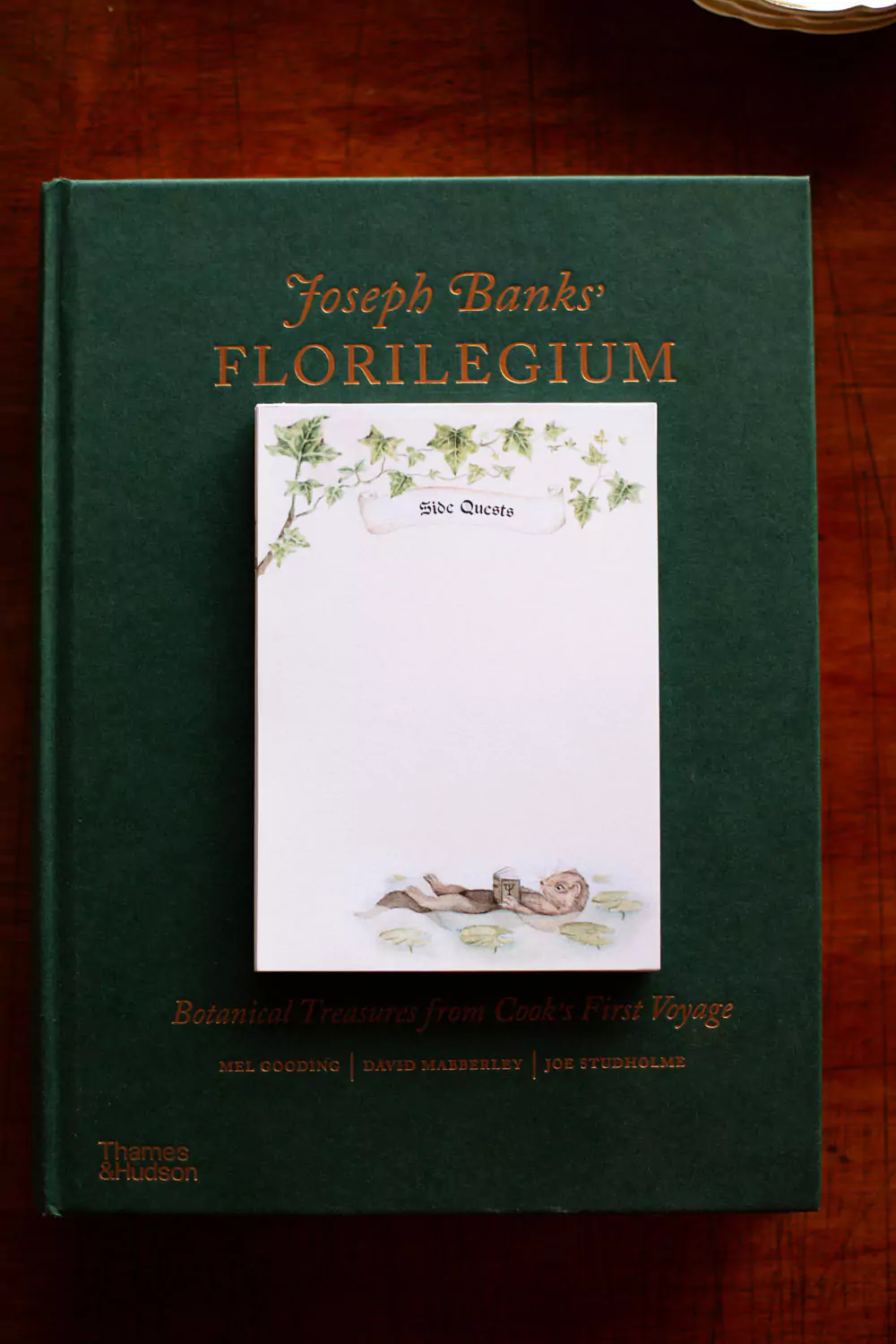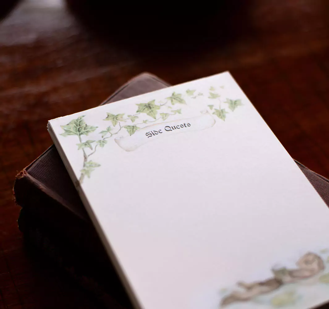 Embark on your next adventure with this whimsical Side Quest Notepad! Featuring elegant vines, an otter floating through lily pads while reading a book, and plenty of space for notes, quests, and ideas. Perfect for fantasy lovers, RPG players, and cozy stationery fans!